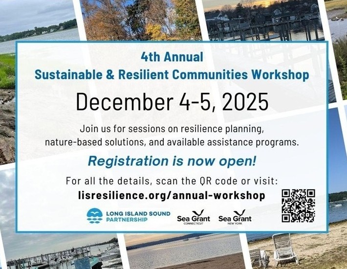The Long Island Sound Sustainable and Resilient Communities Team is excited to announce that for our 2025 Annual Workshop we are holding a series of free virtual sessions over two days Dec. 4-5.